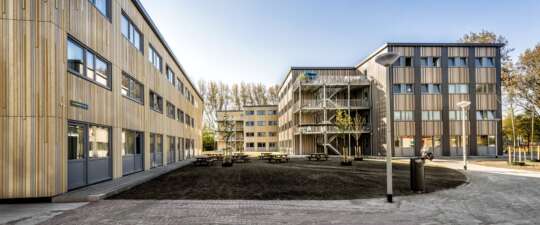 De honderden zelfstandige appartementen zijn, na het winnen van de aanbesteding, door Daiwa House Modular Europe in zes losse gebouwen op het terrein geplaatst. Allemaal in gestapelde bouw met woningen van ongeveer twintig tot vijfentwintig vierkante meter groot. Alle woningen hebben een eigen keuken en badkamer. Per afdeling is er een gemeenschappelijke ruimte. Op het complex komen later nog gemeenschappelijke voorzieningen voor de verschillende woongroepen. De gestapelde kant-en-klare woonmodules blijven tien jaar staan en zijn daarna herbruikbaar. Dit past uitstekend binnen de duurzame ambities van Daiwa House Modular Europe. “Onze gebouwen worden geproduceerd en voorbereid in de fabriek, met eigen vervoer geplaatst op locatie en na gebruik weer gedemonteerd en hergebruikt.